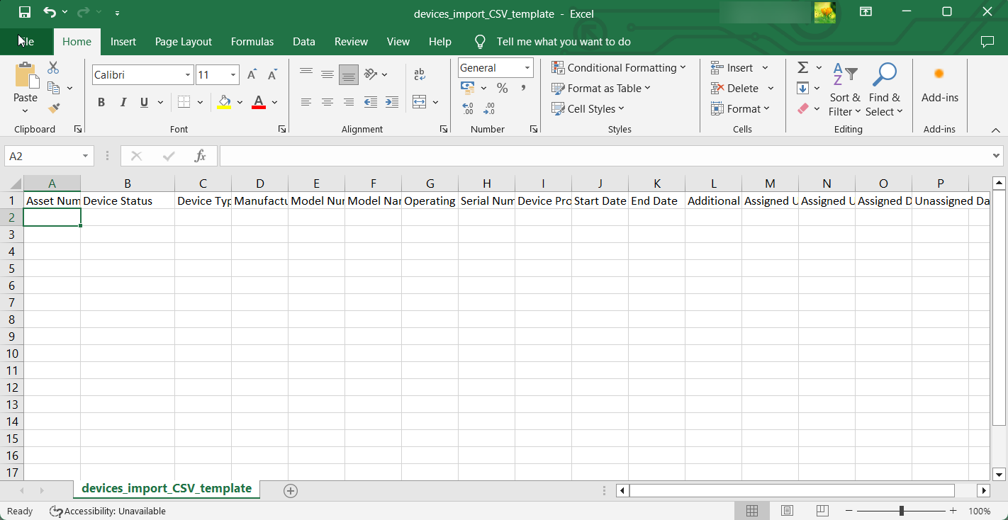 Step 5: Edit the CSV file to input device data and save the CSV file.