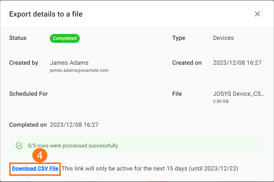 Step 1: Click Export and select Export Devices details as a file on the Devices screen.
