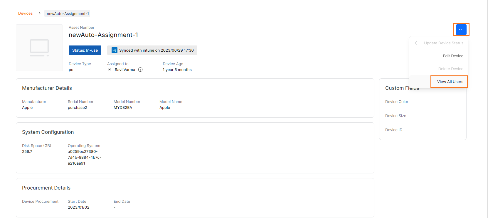 As an IT Admin, you can add details of the previous assignees to track the history of device users within your organization.