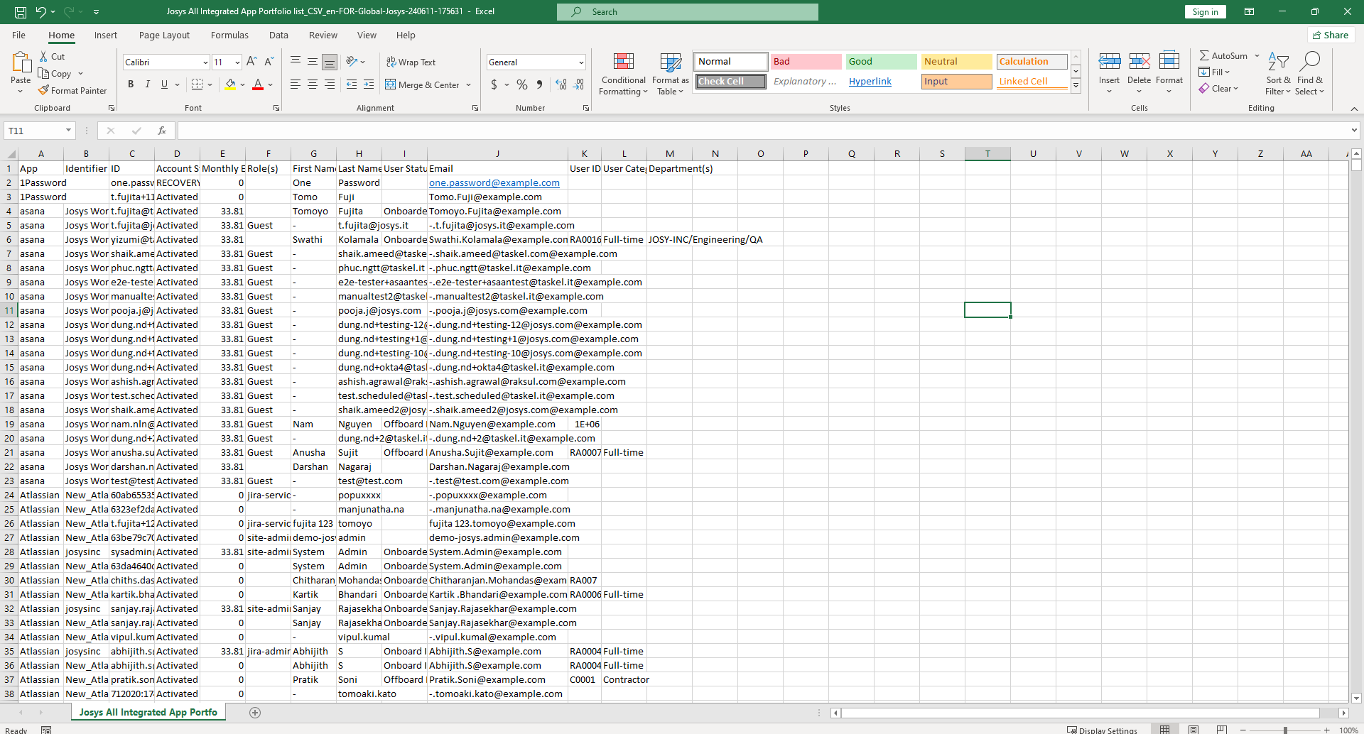 The Integrated App Portfolio CSV file looks like below: