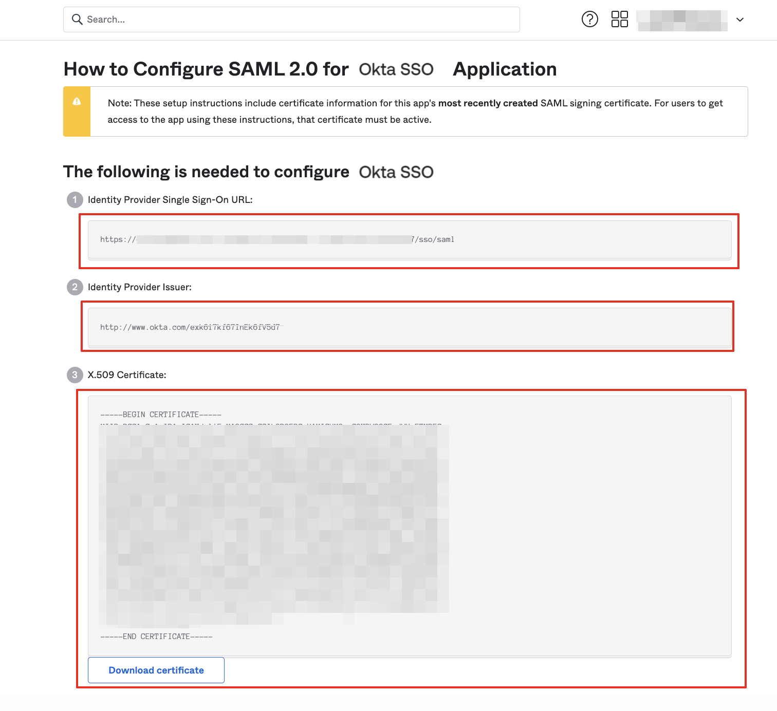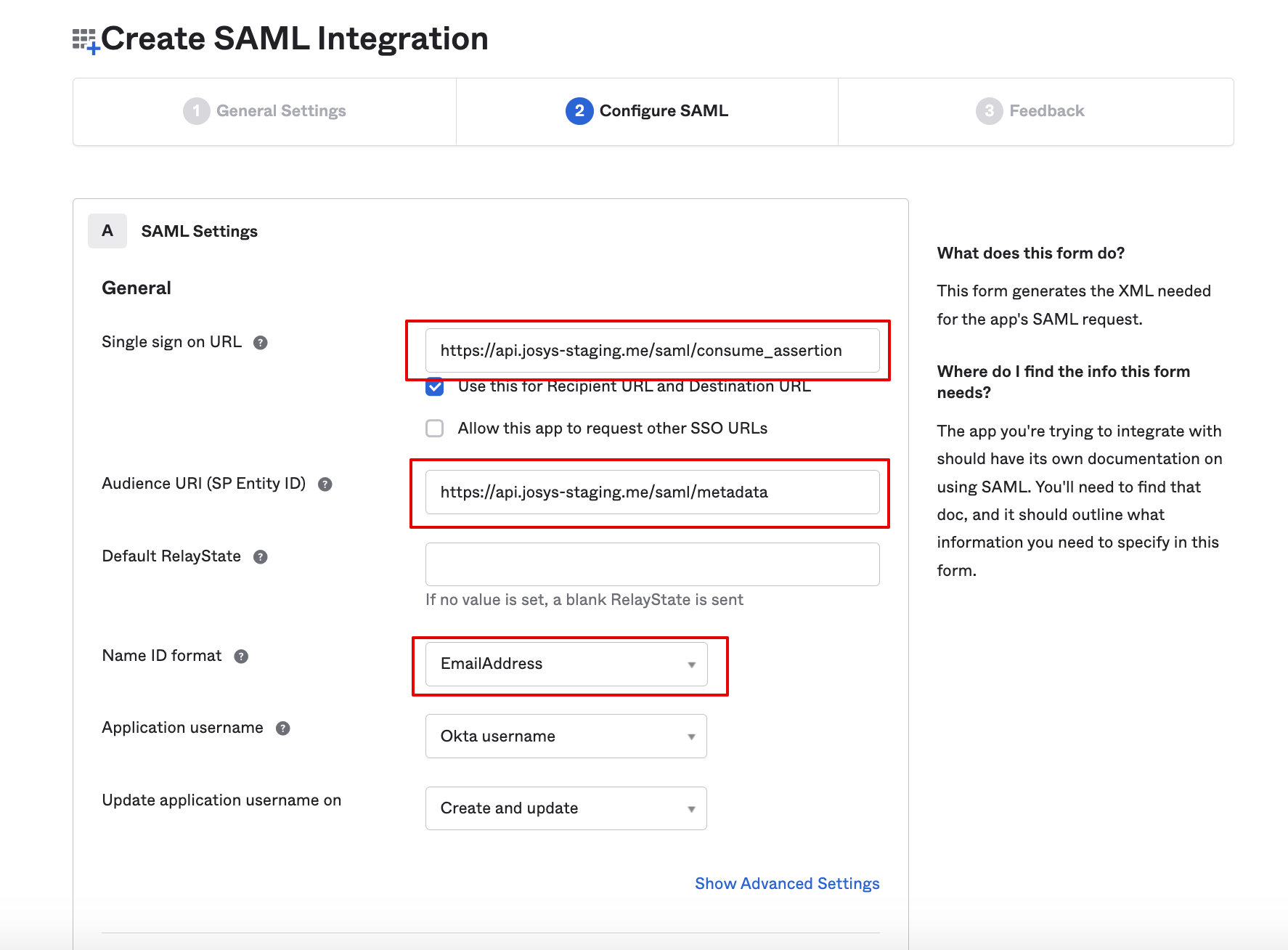 When copying and pasting from the screen, copy the following items from Okta and configure them on Josys.