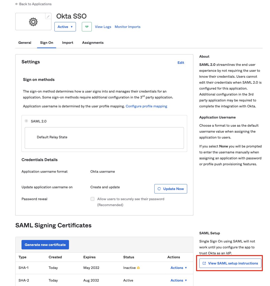 Step 8: Click the Sign on tab and click on View SAML setup instructions.