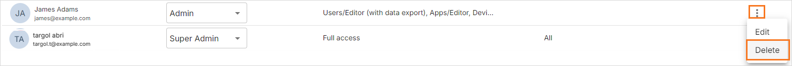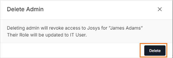 Step 2: Click Delete. This will remove the Super Admin Role from the selected user and update it to the IT User role.