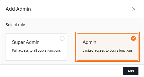 Step 4: Select the Admin role option and click Add.