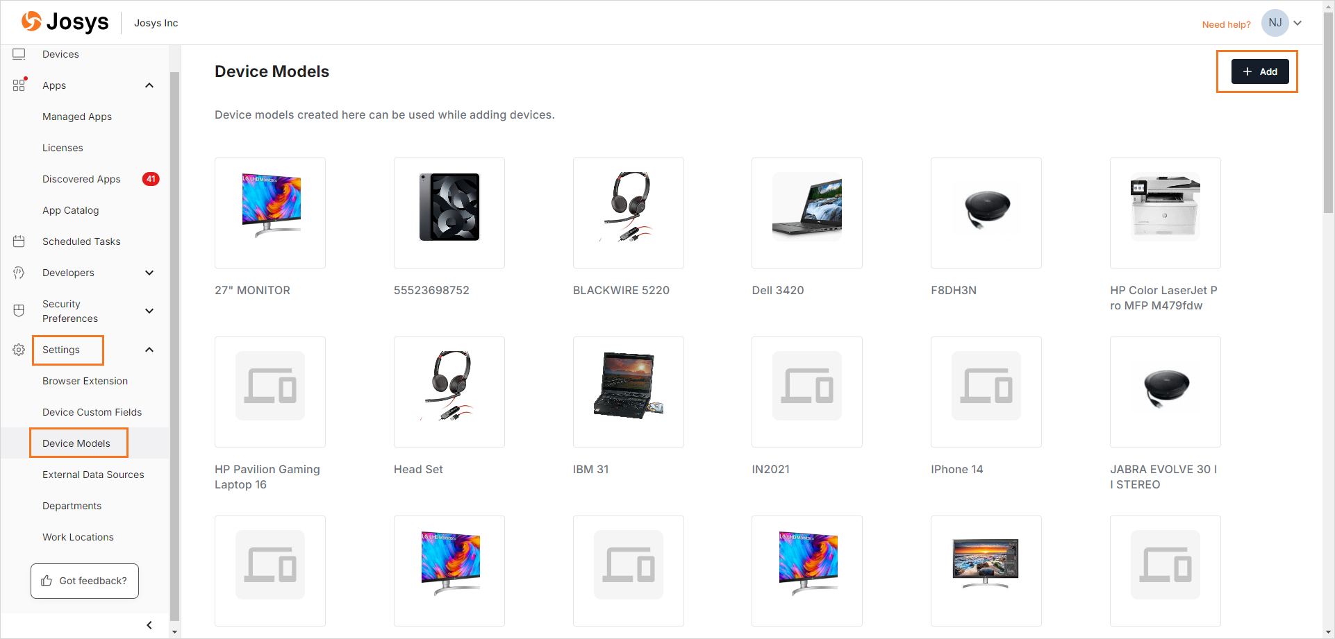- Delete Model: Remove the device model from the Josys application. Doing so also removes the device model details from its associated device.