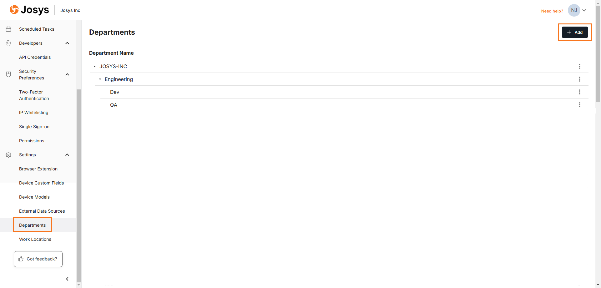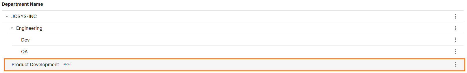 - To create a Product Development as the sub-department of the Engineering (Parent) department, select the JOSYS-INC/Engineering option from the Parent Department dropdown menu.