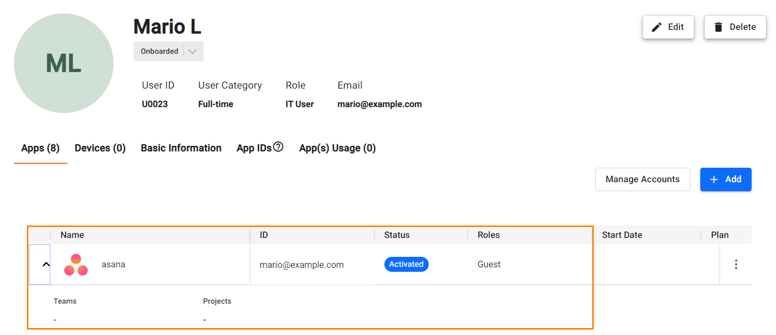 Integrating Asana with Josys enables the IT Admin to view and manage accounts.
