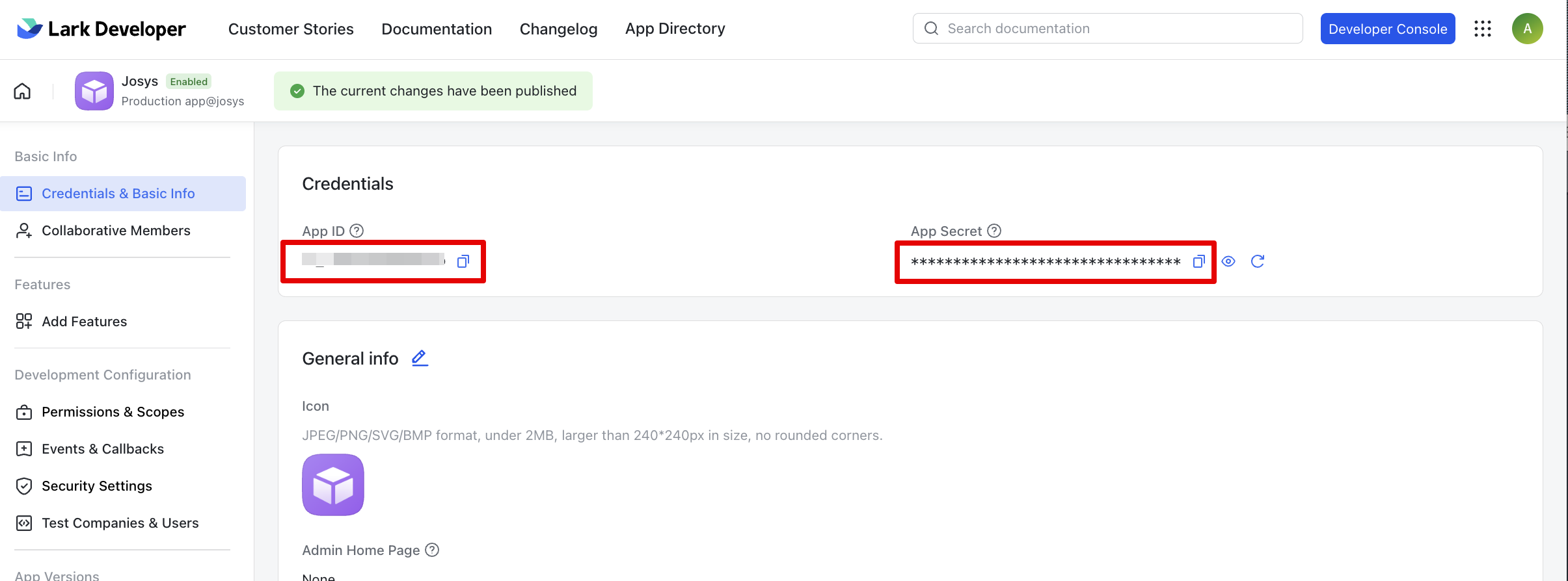 Step 10: Select the Credentials & Basic Info option from Basic Info. Copy the App Id and App Secret to use later in the integration steps.