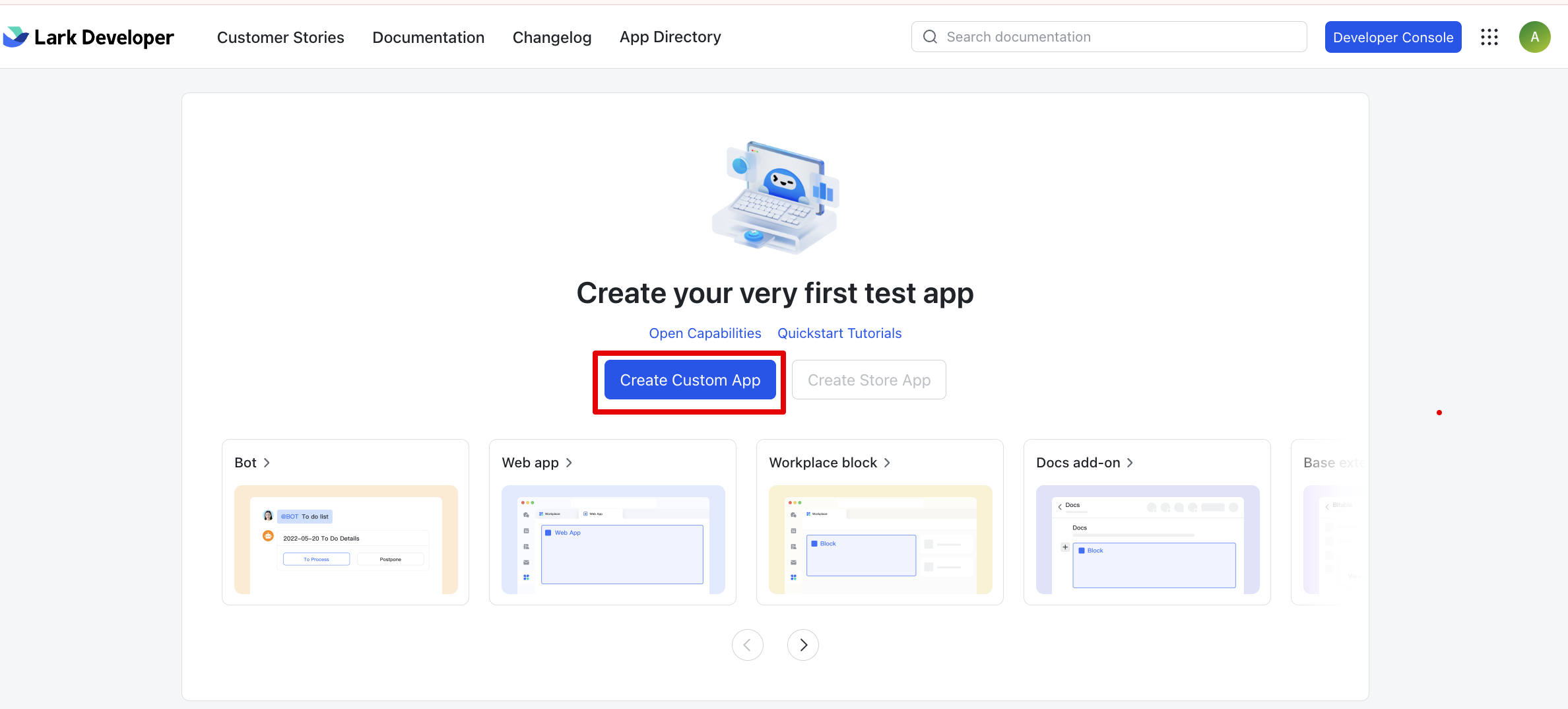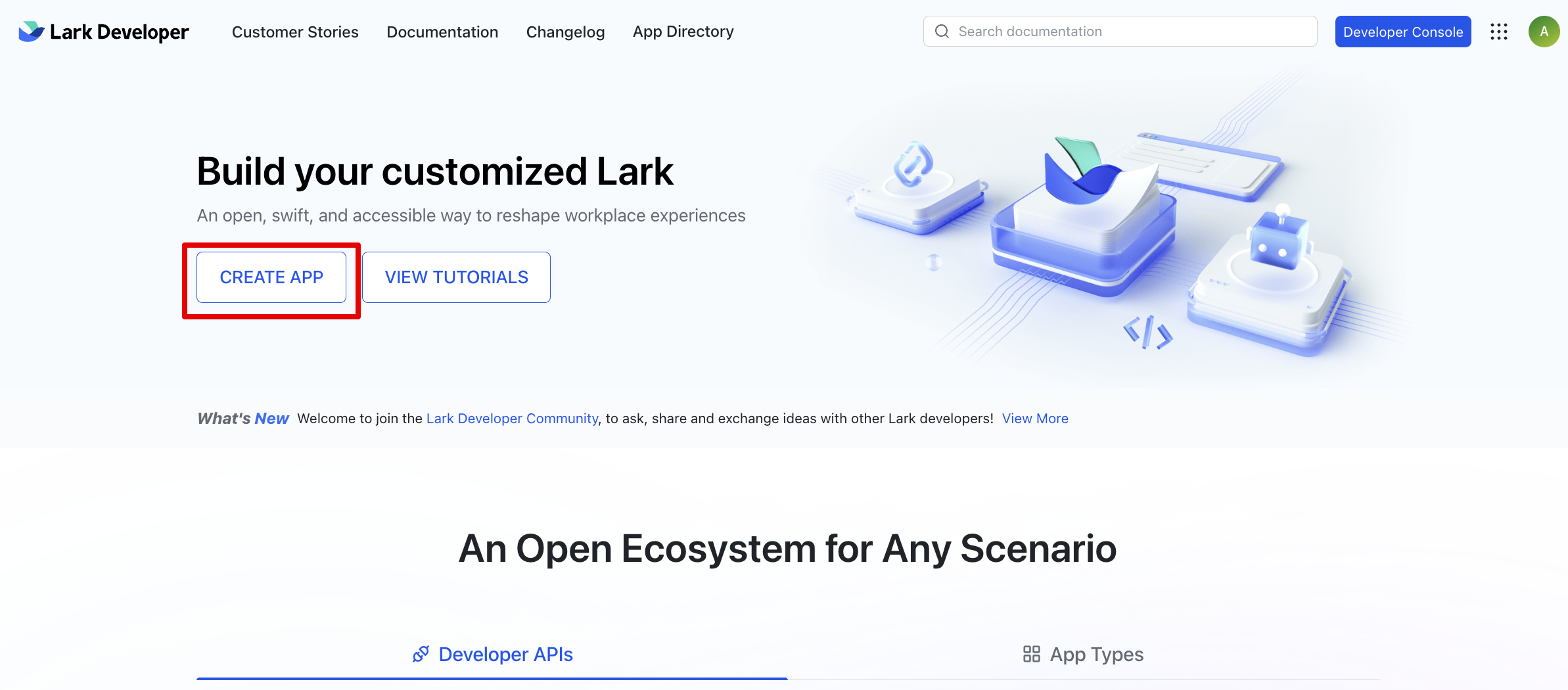 Step 1: Log in to Lark using an admin account. Click Create App.