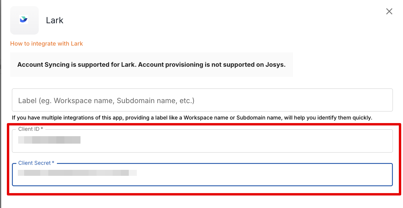 Note: Josys supports multiple Lark integrations.