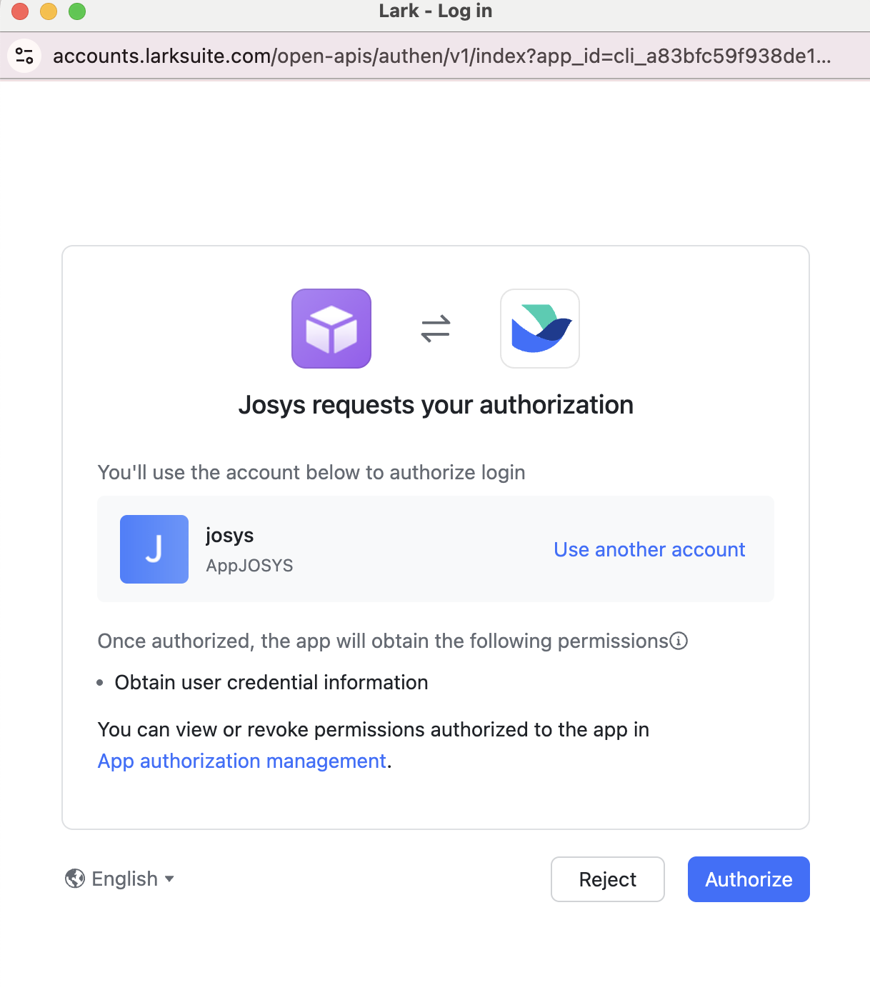 Step 3: Log in to Lark using an admin account. Follow the guided steps to authorize Josys and complete the integration.