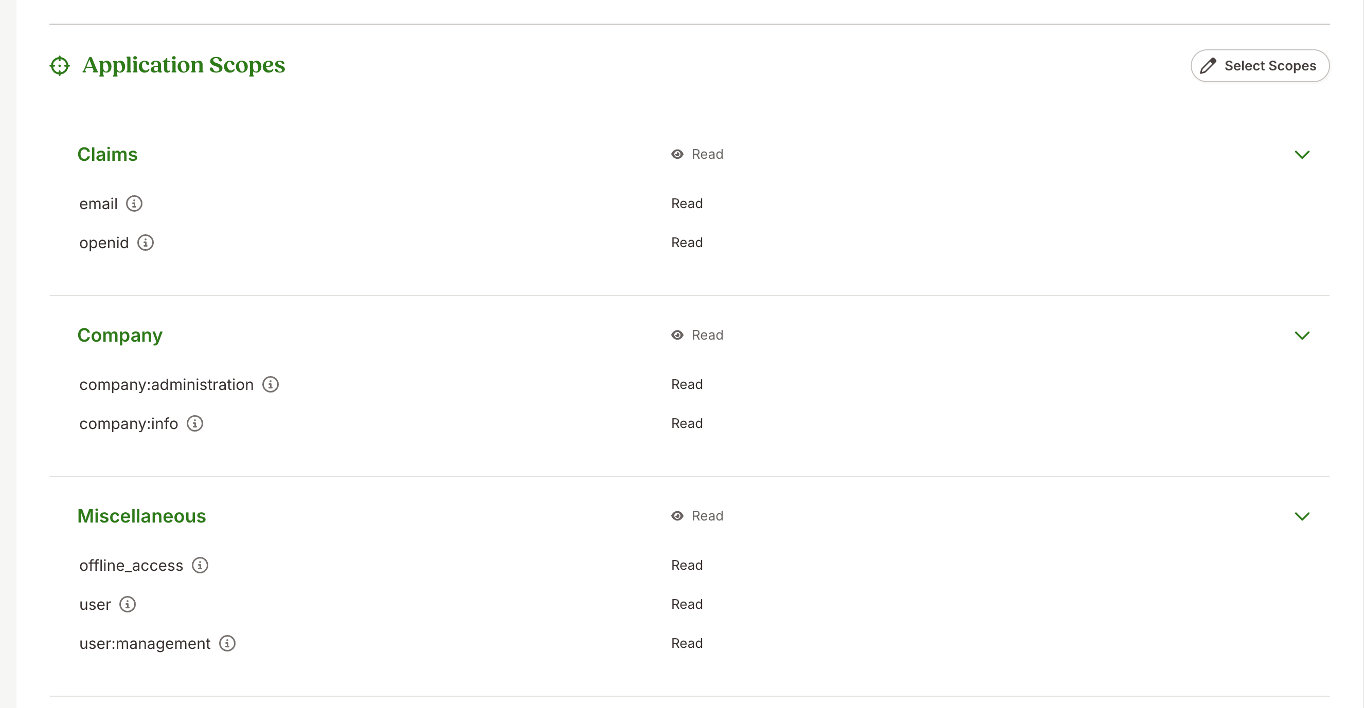 Step 5: Click on Select Scopes and add the scopes below