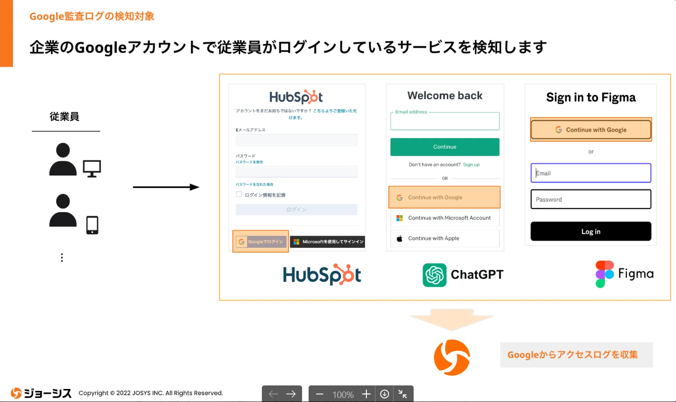 - SaaS and Services detection: Josys browser extension identifies SaaS platforms and services employees log into using their organization's Google account.