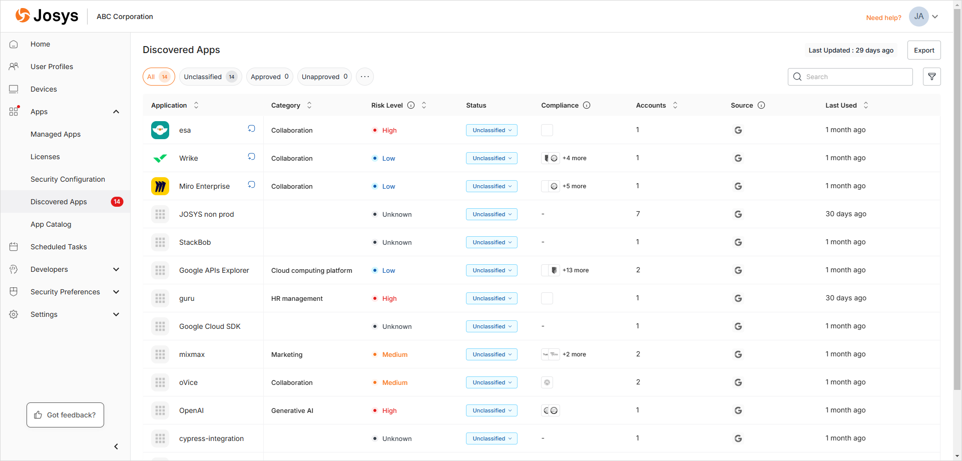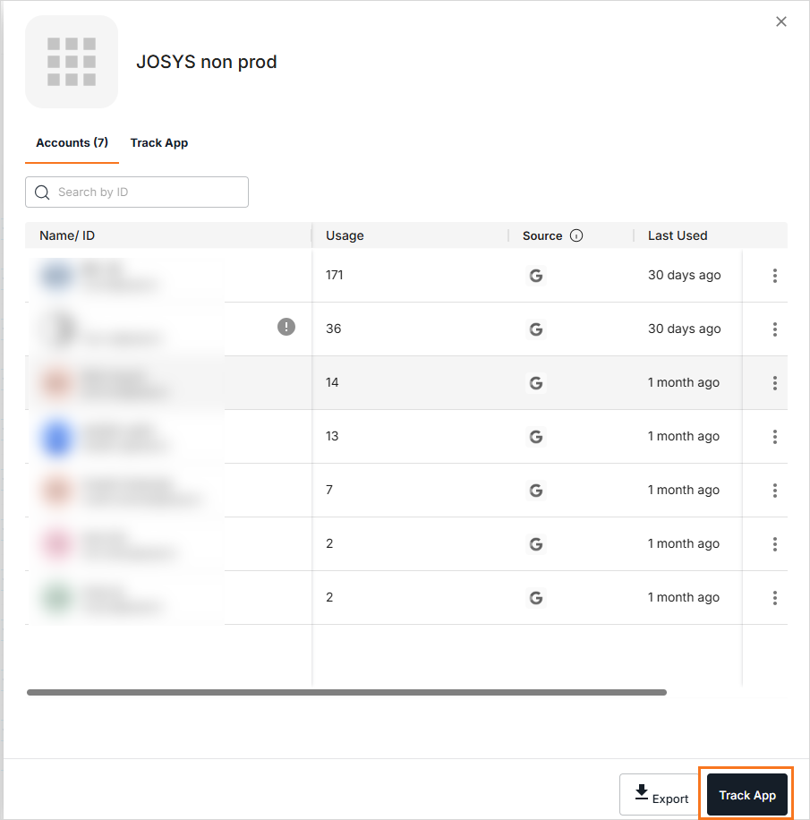 Note: If an app is registered as a Tracked app, then its usage status is not available. However, if you remove the app from the Tracked App list under Managed Apps, it will become visible again.