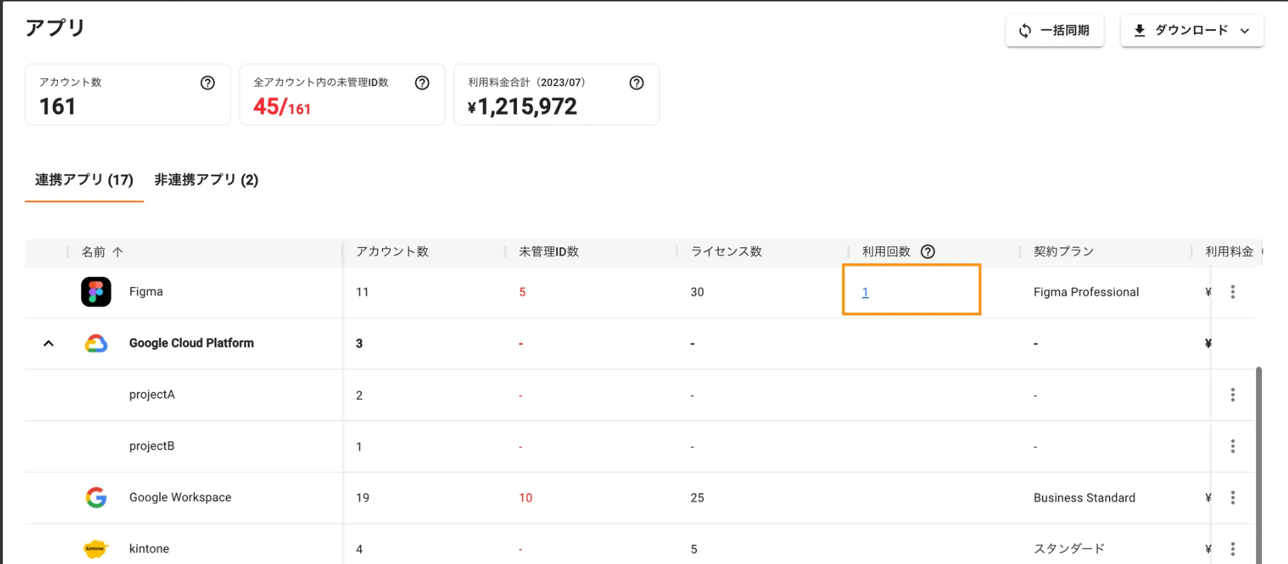 For GWS access logs, the usage count reflects the number of times login privileges were granted to accessing applications, not necessarily the number of actual logins using a Google account.