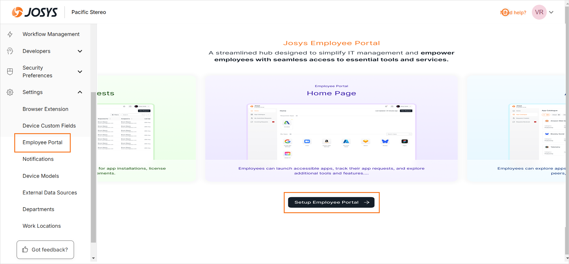 Step 3: Click Setup Employee Portal to start configuring the Employee Portal.
