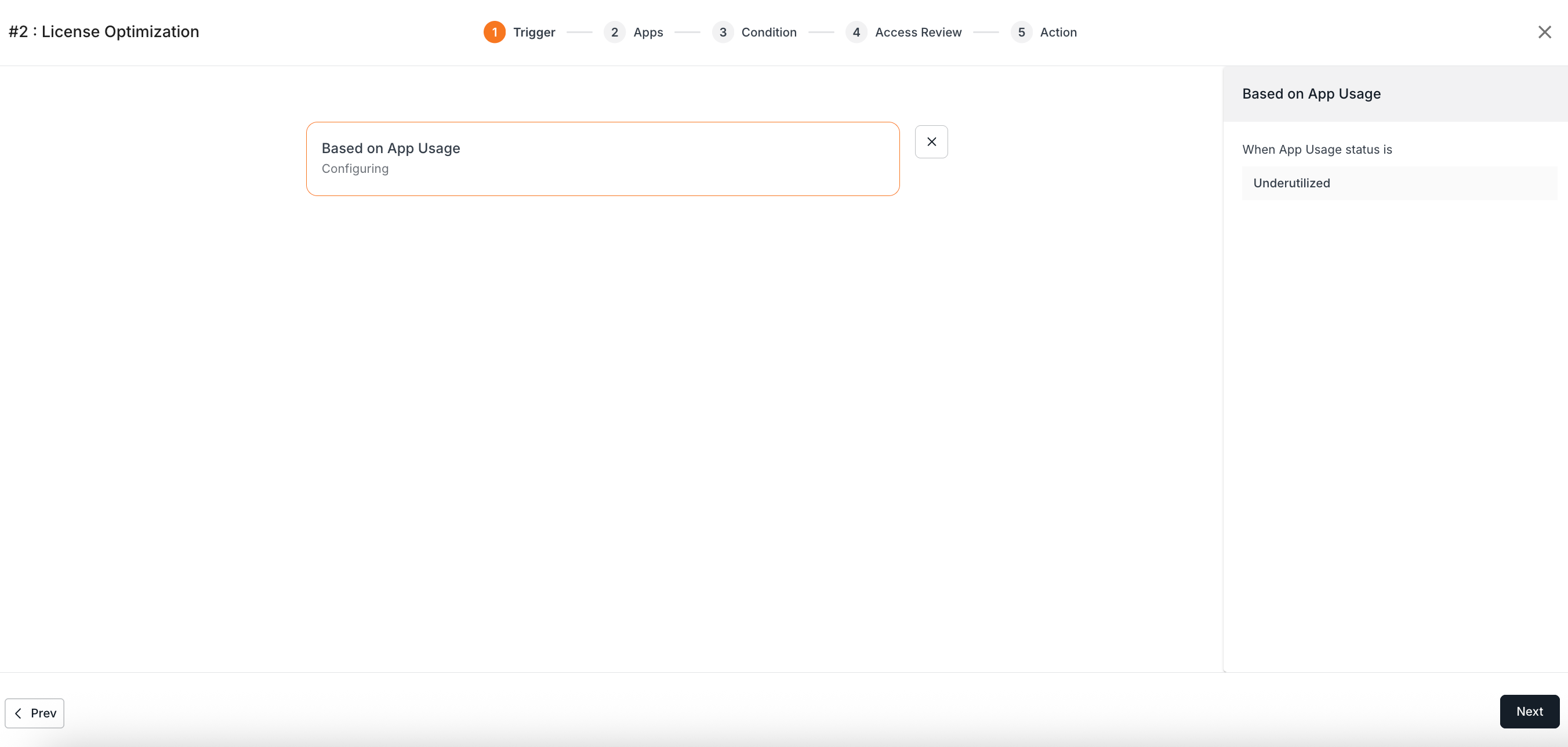 One common challenge faced by the organization is identifying underutilized licenses, which leads to additional costs and license wastage. To optimize the license, Josys enables the IT Admins to create an automated workflow to manage the underutilized licenses. This will help in identifying the unused licenses across the applications, create triggers for the workflow, set conditions for the access review, and configure the necessary actions. This leads to reduced costs, eliminating license waste, and ensuring licenses are allocated efficiently based on actual usage and needs.