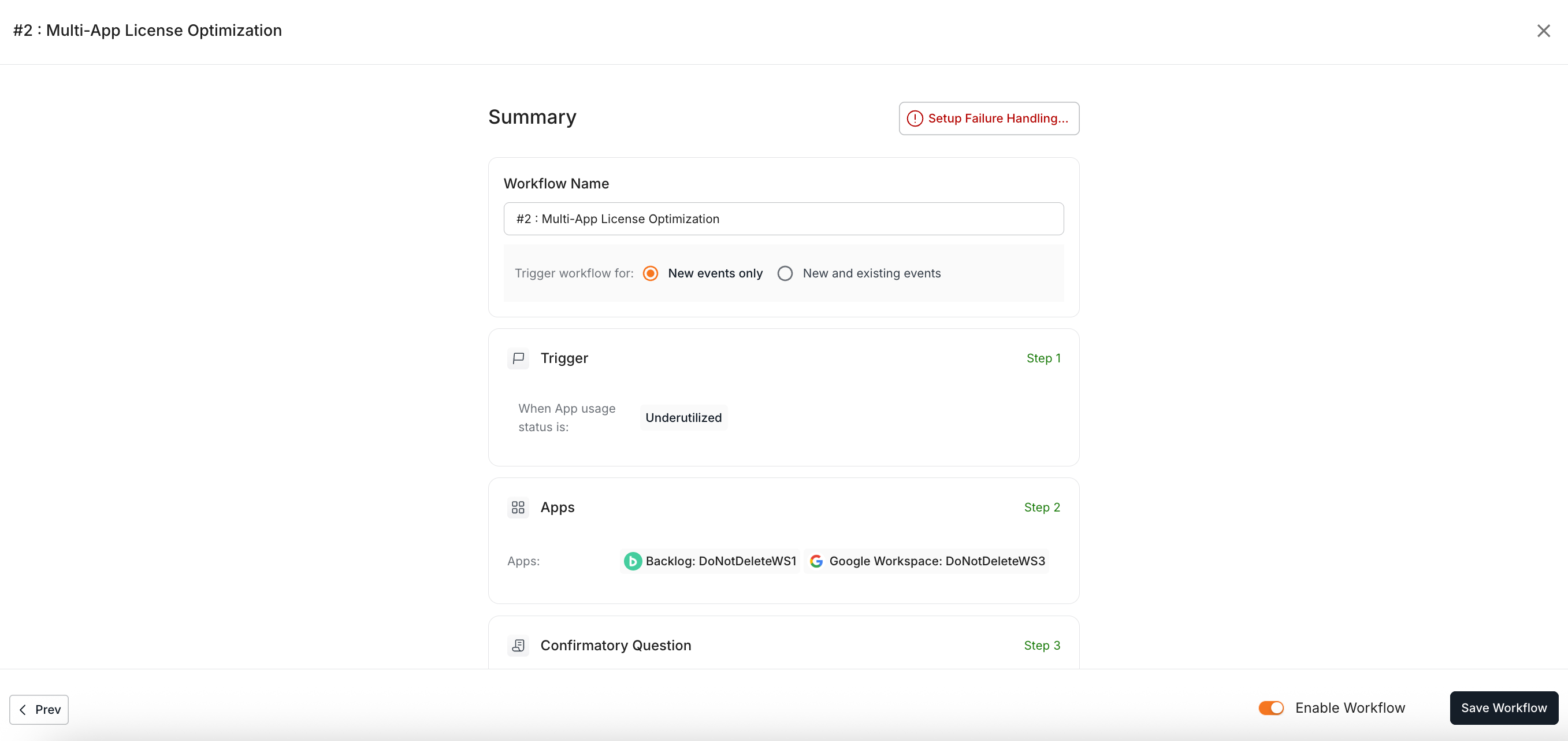Step 9: Click Save Workflow to save this workflow. The workflow is enabled by default; however, you may disable it in this step.