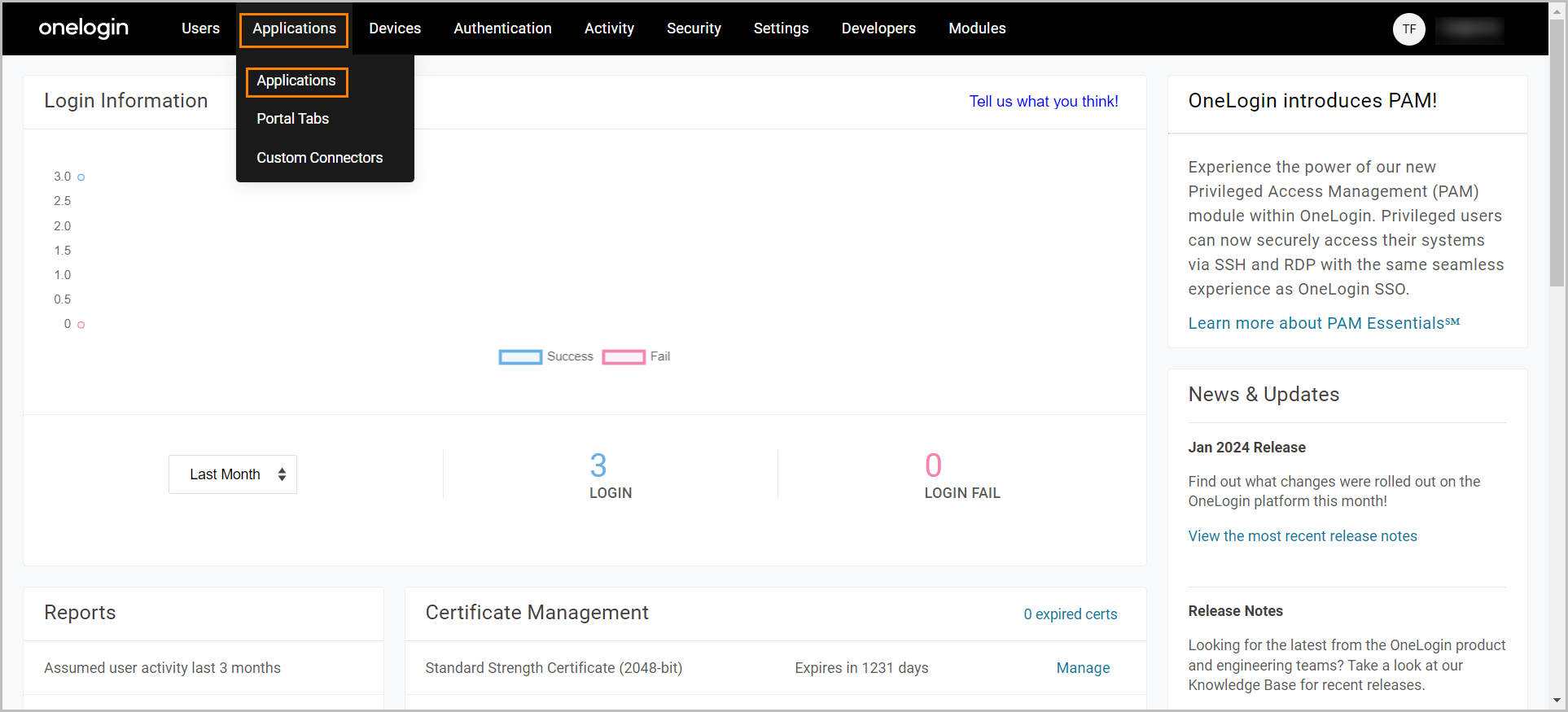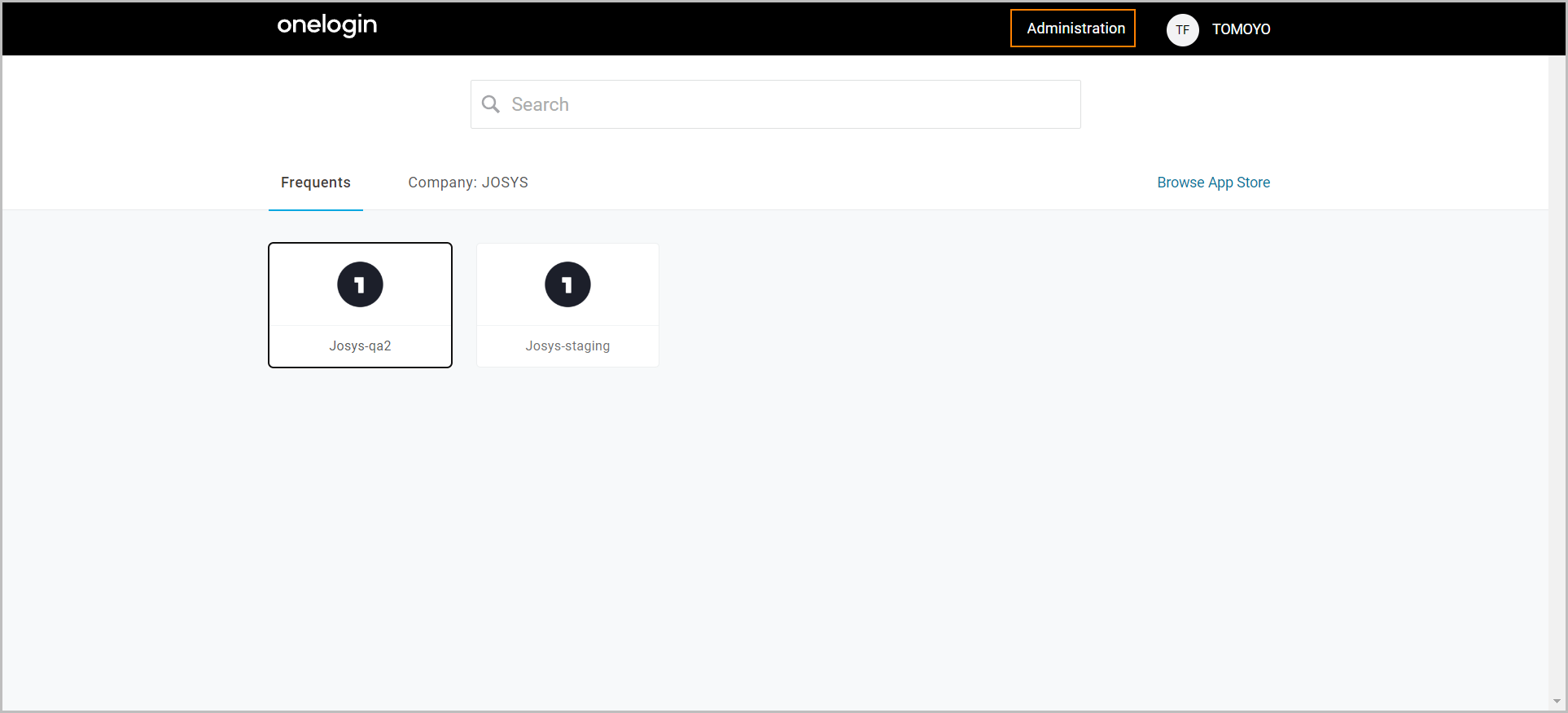 Step 1: Log in to OneLogin using an admin account. Click on Administration.