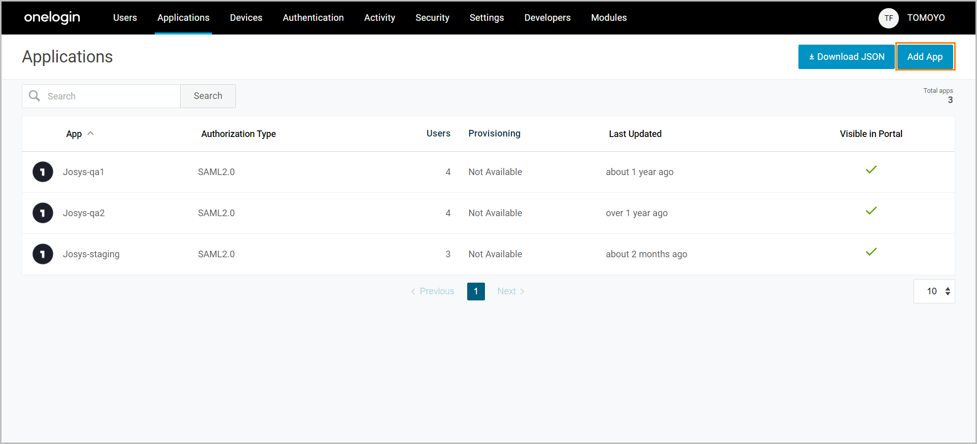 Step 12: Navigate to the Applications from the left menu. Select the previously created SSO application from the drop-down to assign the user.