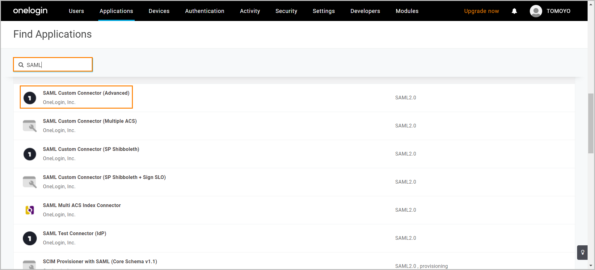 Step 4: Search for SAML Custom Connector (Advanced), and select.