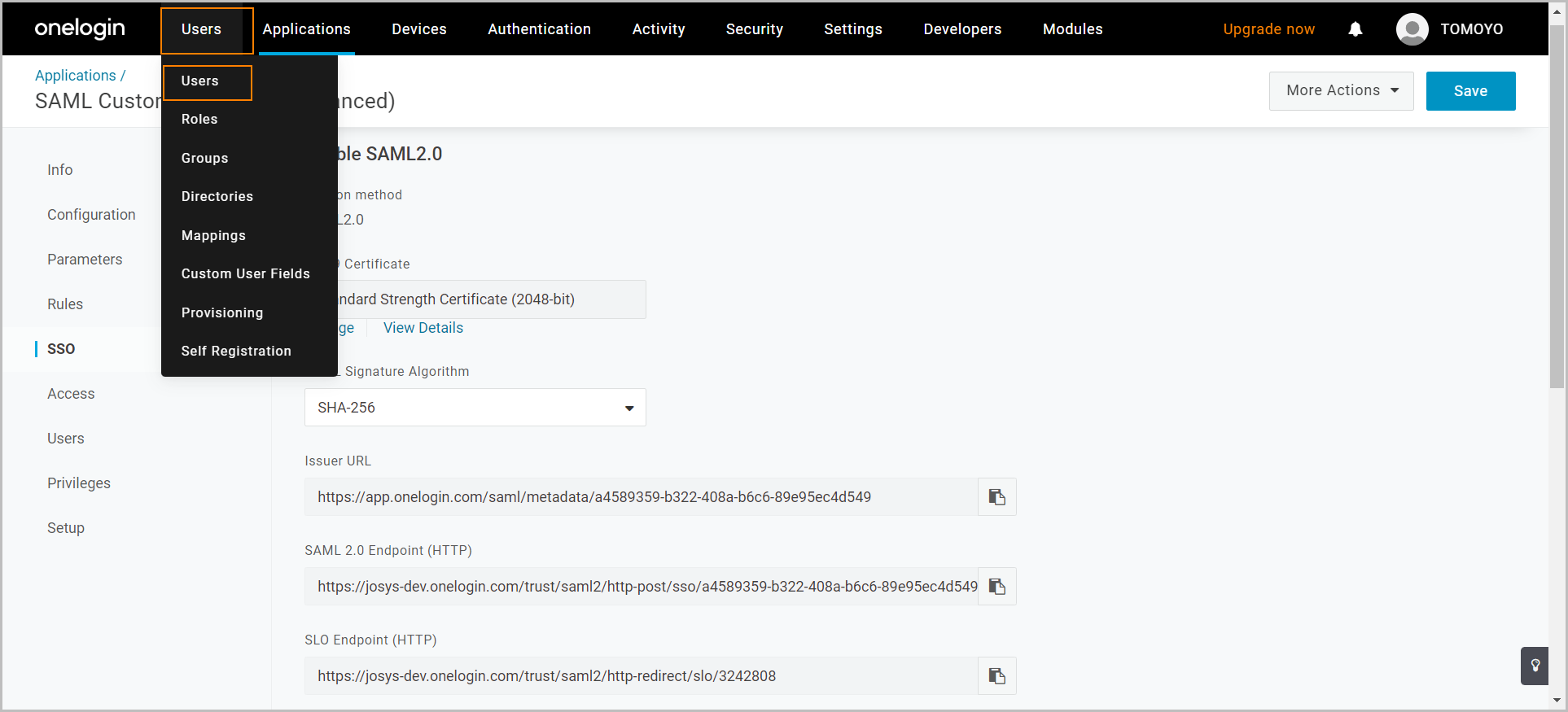 Step 10: To assign Users to OneLogin, select Users to assign SSO from the Users menu.