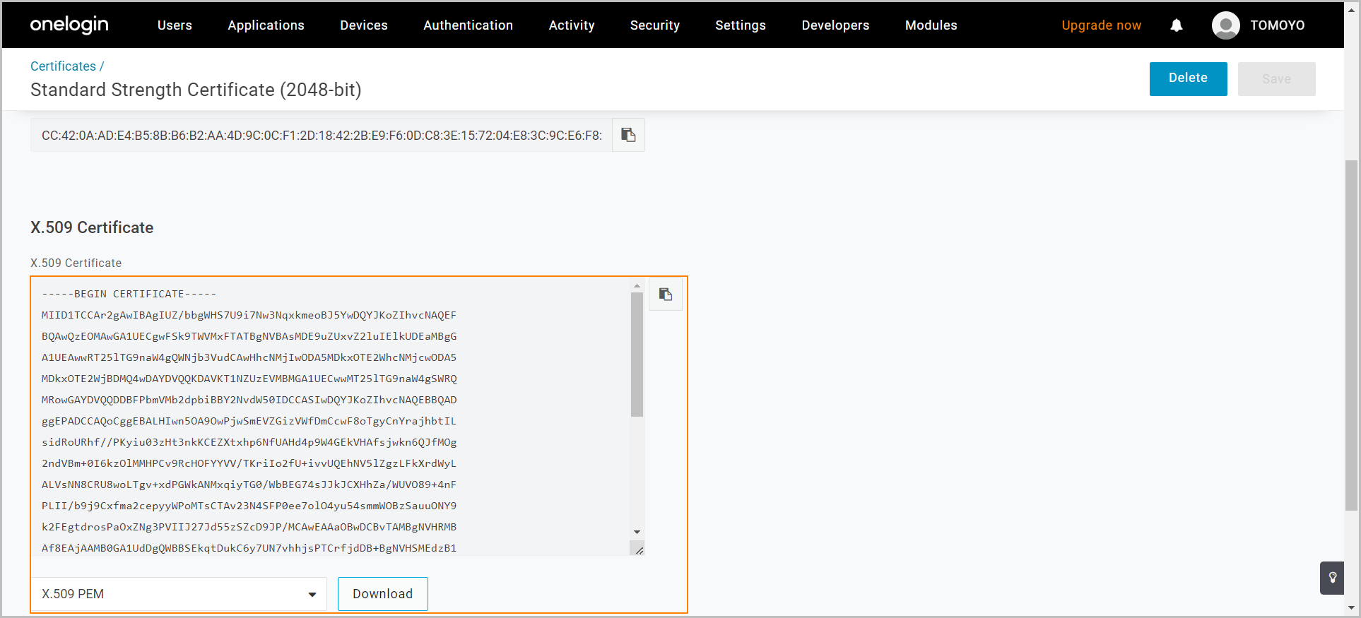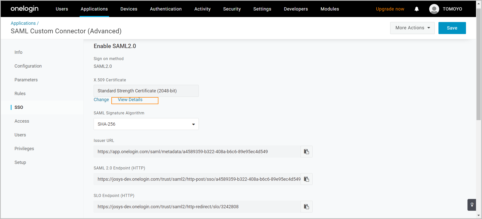 To view and download the certificate, navigate to the SSO from the left menu and click View Details. Click Download.