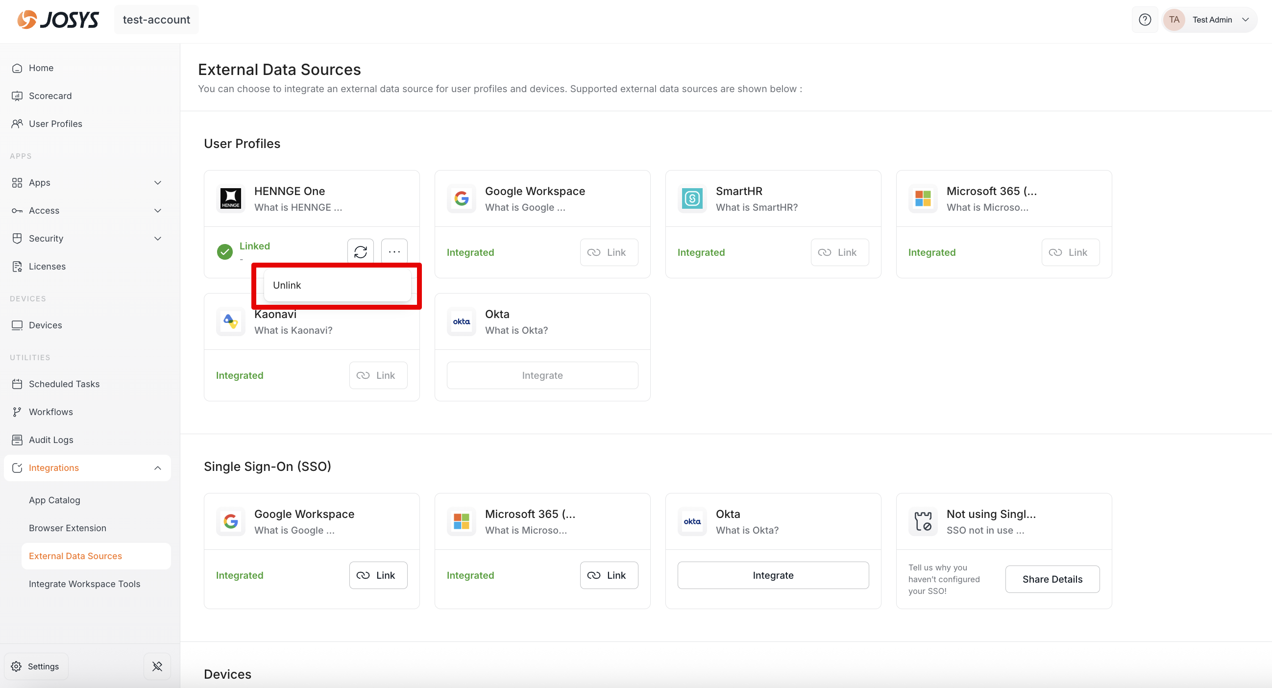 in HENNGE One and select Unlink. This will unlink HENNGE One from Josys.