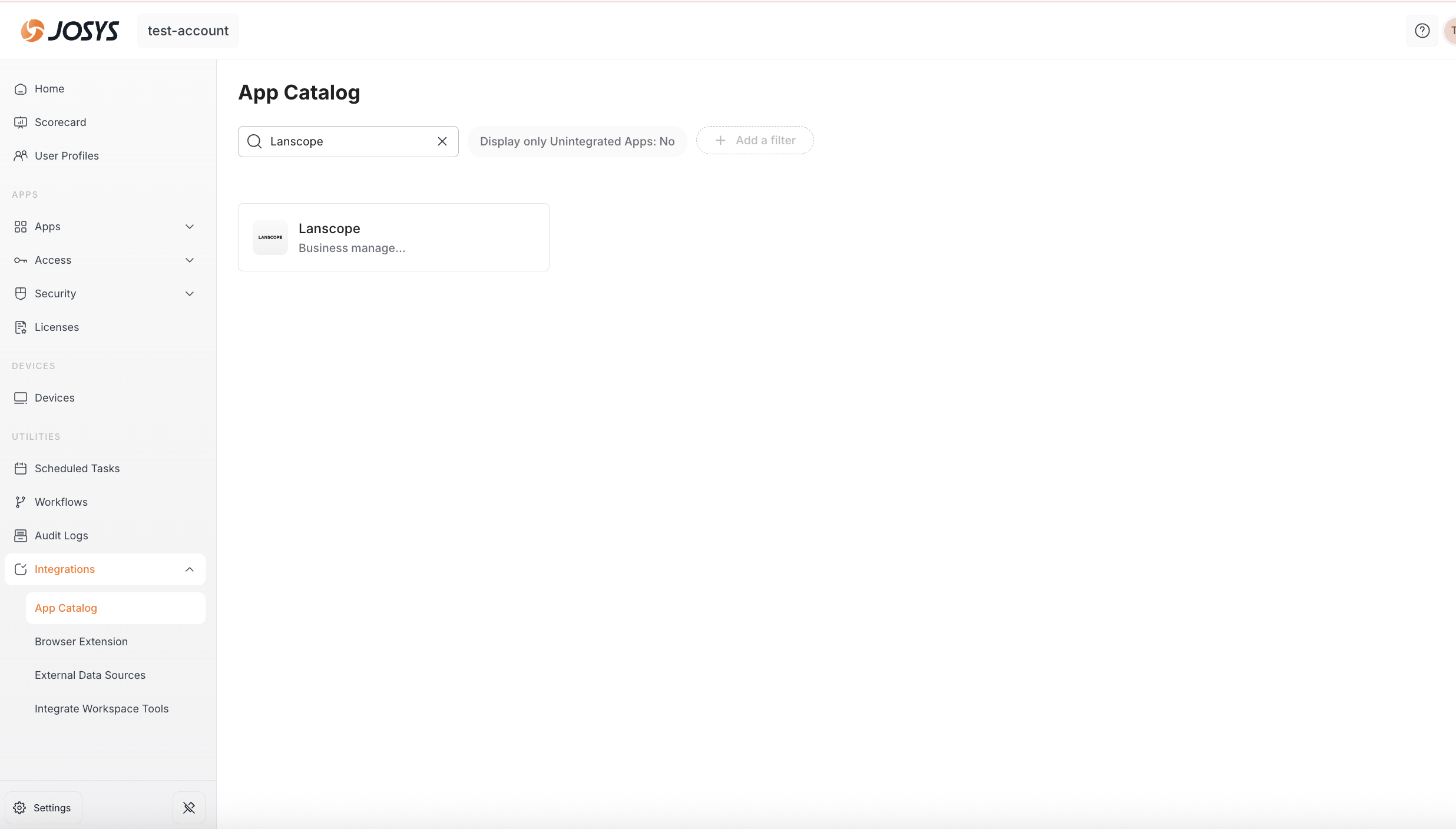 Step 1: Select LANSCOPE from the App Catalog in the Integrations section.