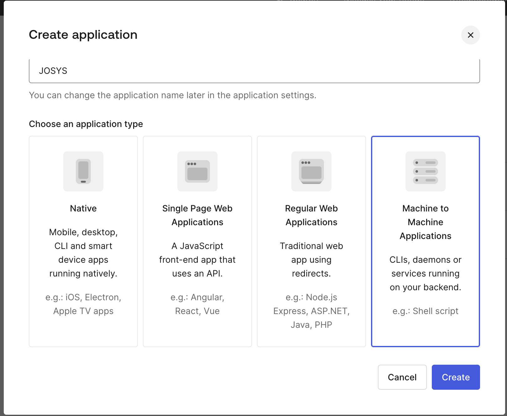 Step 2: Click on + Create Application and select Machine to Machine Applications then click on Create.