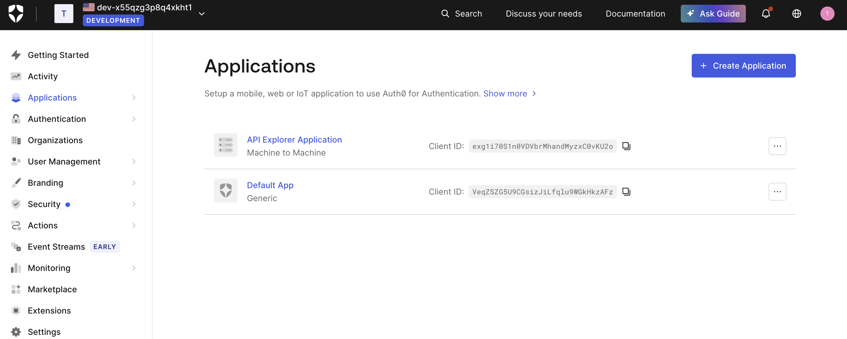Step 1: Log in to Auth0 using an owner account. Navigate to the Dashboard > Applications > Applications.