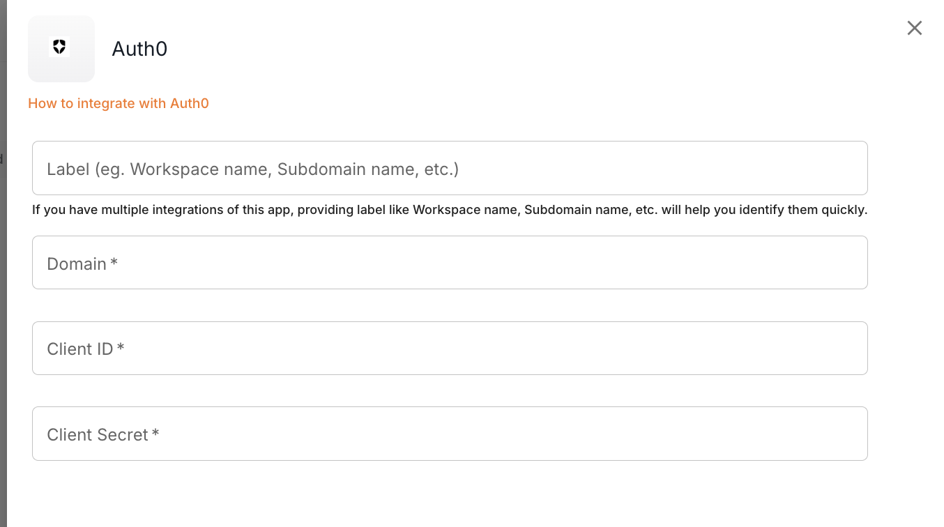 Step 2: Provide a suitable Label for identification. Enter the Domain, Client ID and Client Secret copied in the previous section and click Next to proceed.