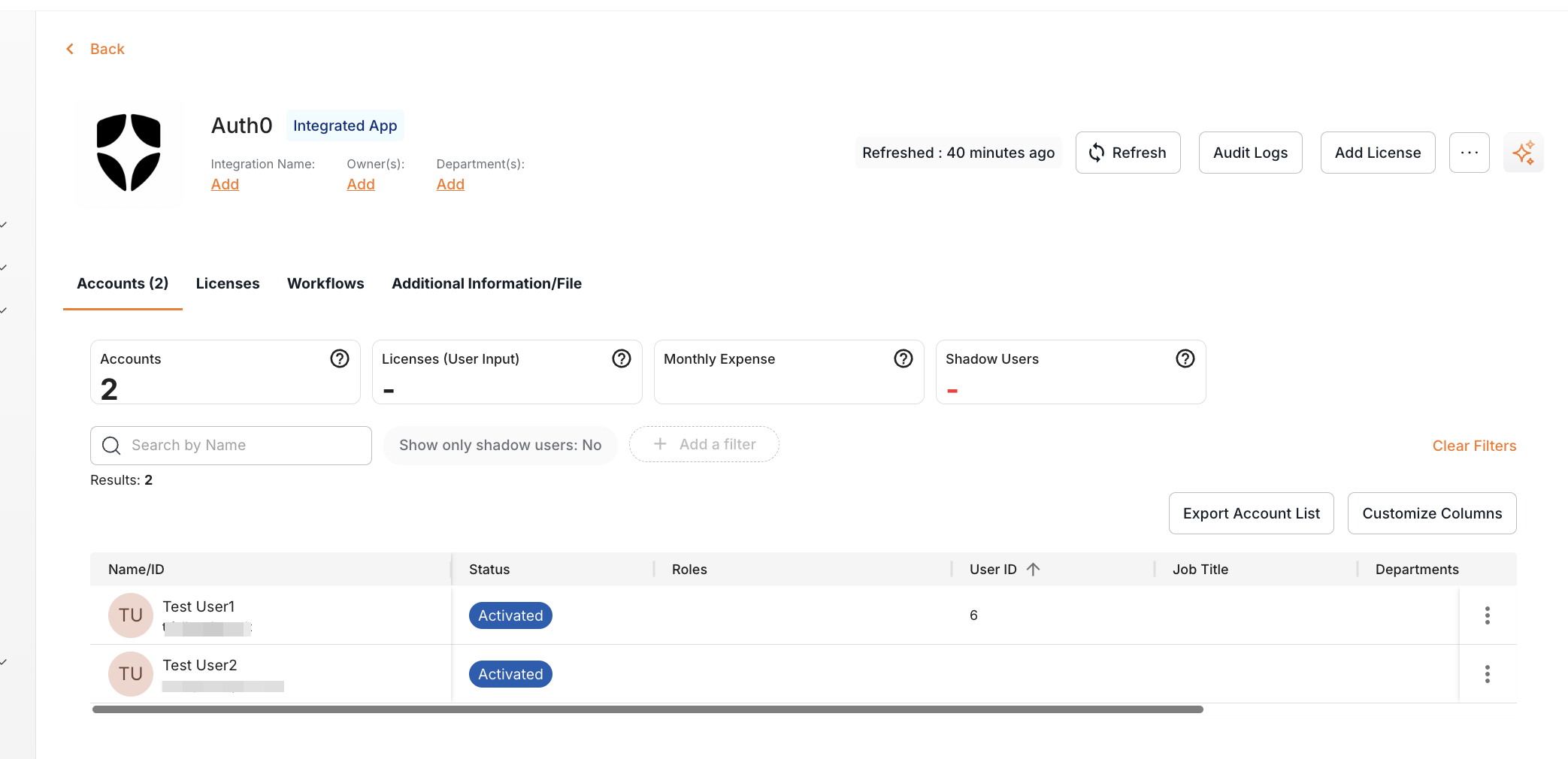 Integrating Auth0 with Josys enables IT Admins to view and manage the user accounts.